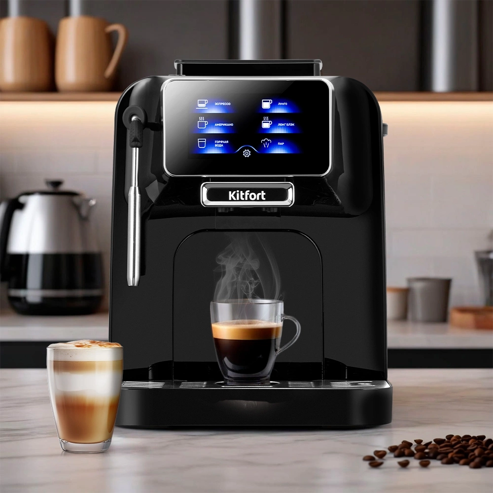 Кофемашины Kitfort выполнены в сдержанном и современном дизайне с использованием металла и прочных материалов, что обеспечивает долговечность и аккуратный внешний вид. Компактные размеры позволяют легко разместить устройство на кухне или в офисе. Это универсальное решение для тех, кто ищет функциональную кофемашину с оптимальным соотношением мощности, удобства и цены.